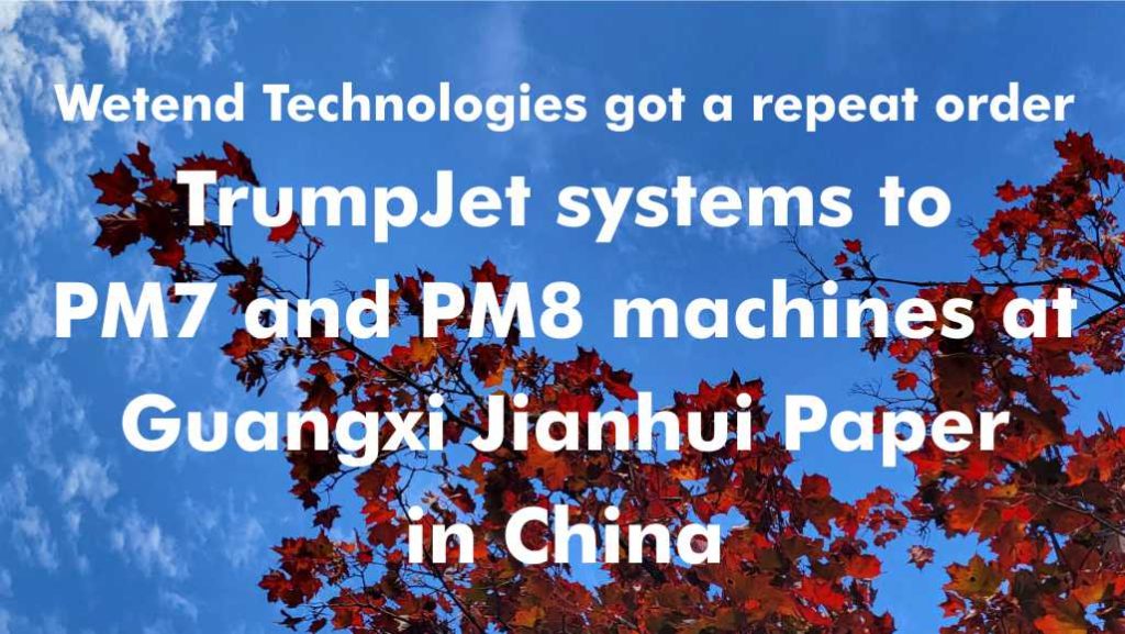 “We’re delighted to partner with Guangxi Jianhui Paper on this strategically important project,” says Jussi Matula, CEO of Wetend Technologies Ltd. “Our TrumpJet technology will not only provide excellent runnability and product quality for PM 7 and PM 8 but will also deliver measurable environmental and operational benefits in line with the sustainability priorities of our client.”